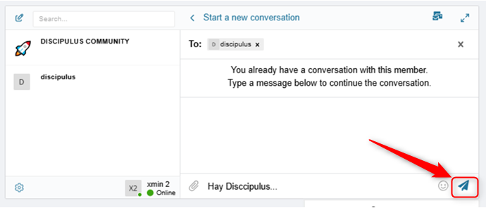 3. Once you have finished composing your message, please send it by pressing the plane-shaped button in the bottom right corner. Your message will be sent immediately.
