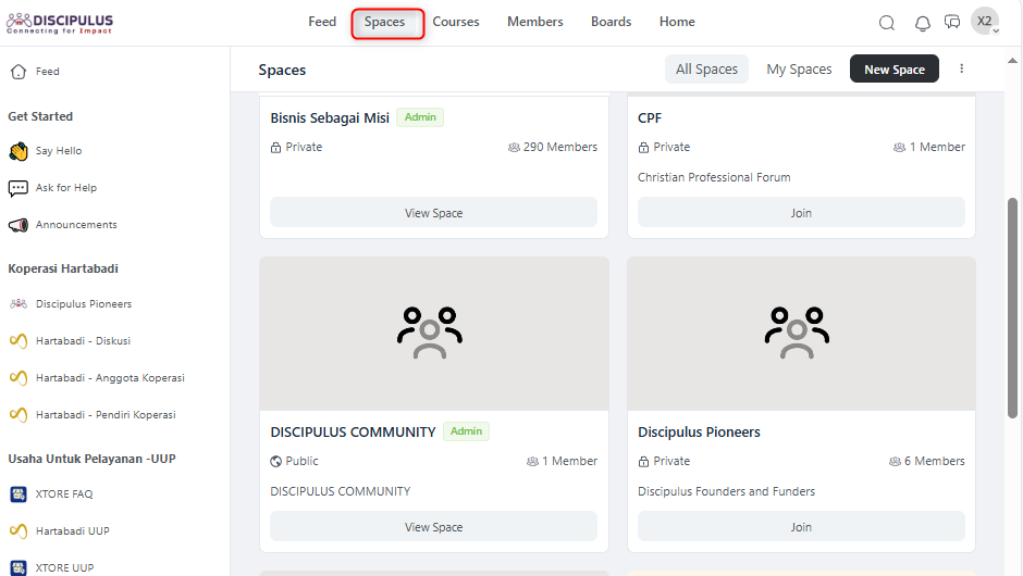 1. Go to the “Spaces” menu, then select the Space you have created.