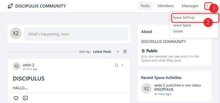 2. Select the three dots on the top right corner, then select “Space settings”.