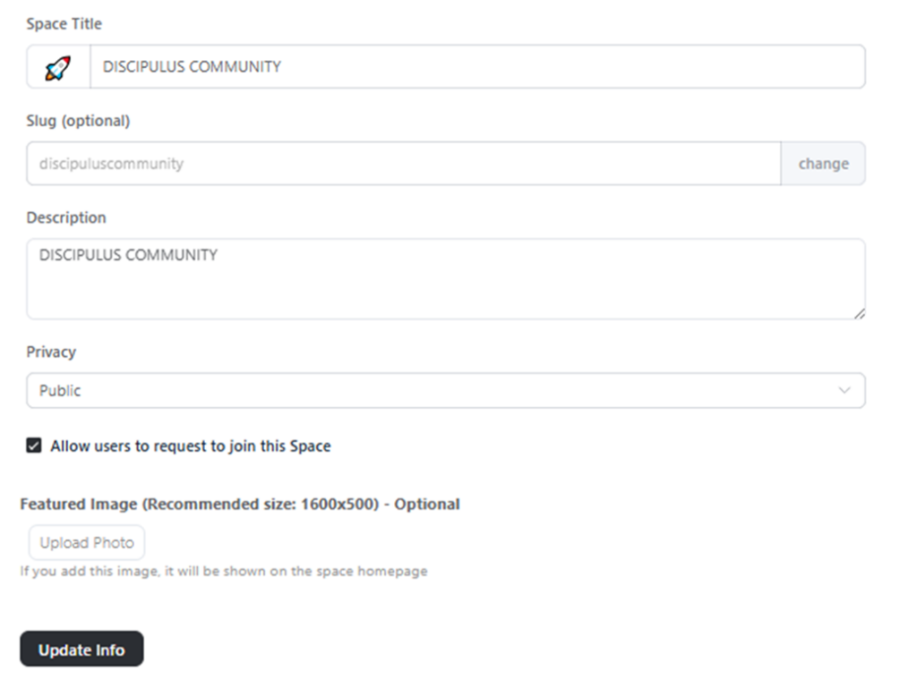 3. You can organise your space, and “Update Info”