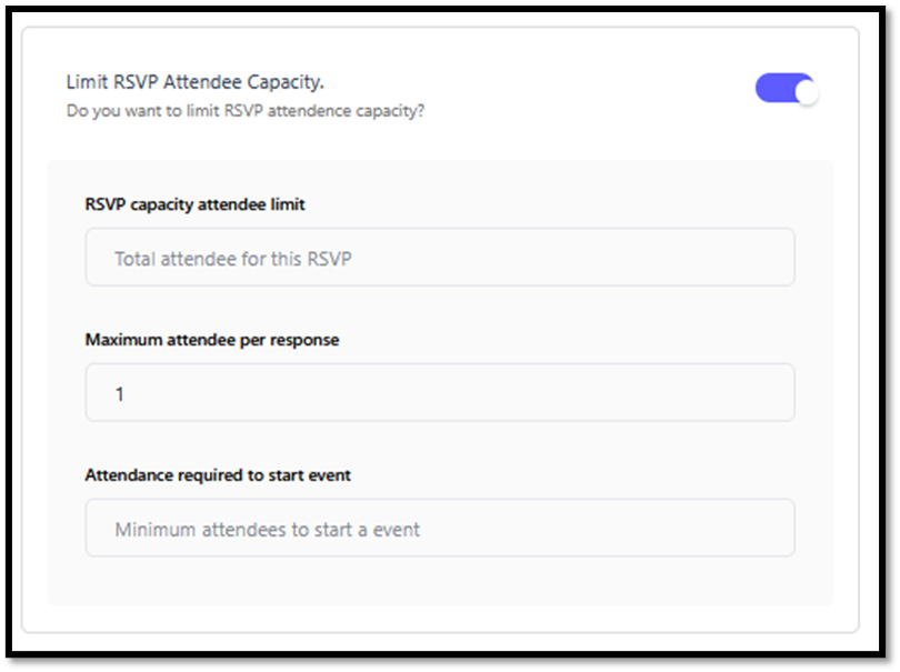 • RSVP capacity attendee limit – the maximum number of RSVP attendees.